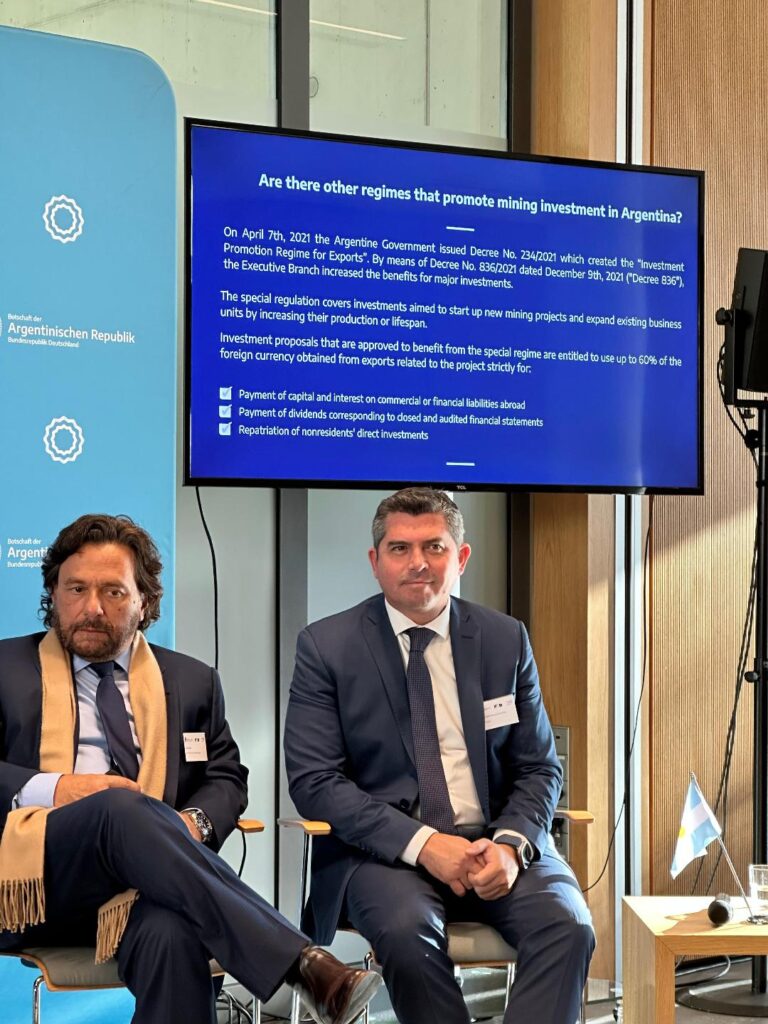 En el caso de San Juan y a la hora de presentar su portfolio de cobre, contó con la asistencia de Michael Meding, empresario alemán al frente del proyecto cuprífero Los Azules, en Calingasta.Tras la conferencia organizada por la Embajada Argentina en Berlín.