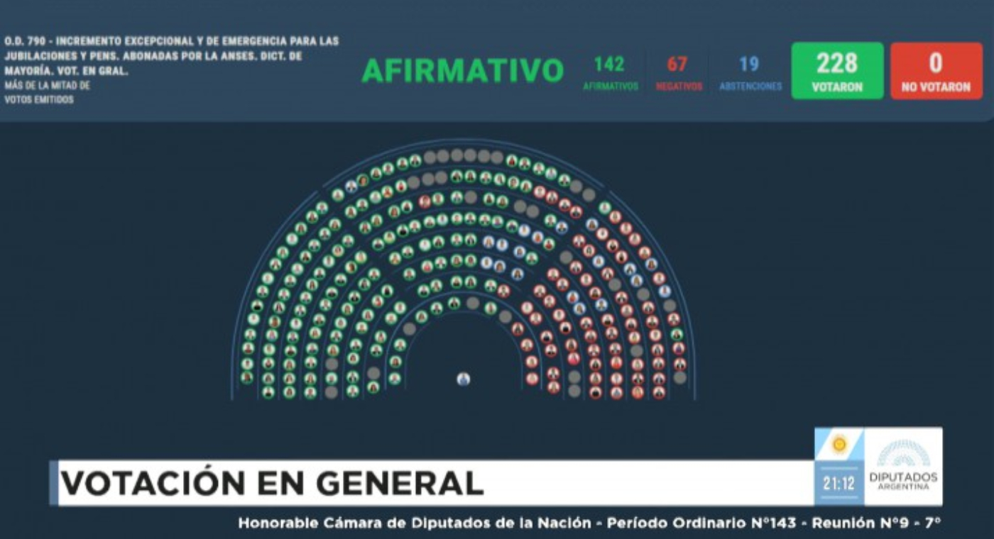 Diputados aprobó el aumento del 7,2% para jubilados con amplio respaldo