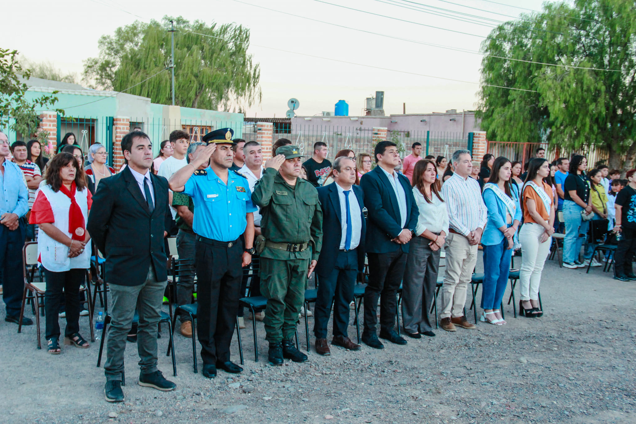 El acto contó con la presencia del intendente Matías Espejo, acompañado por su esposa, el presidente del Honorable Concejo Deliberante, Héctor Sánchez, funcionarios municipales, miembros de la Asociación Civil Gaucha de Jáchal, representantes de escuelas, el cura párroco Cristian Giménez y una gran cantidad de vecinos.