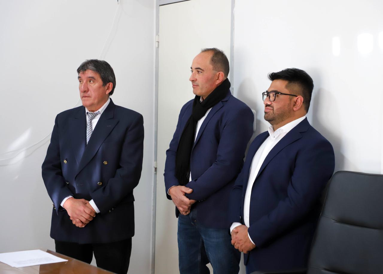 El intendente Matías Espejo junto el director de Servicios Públicos, Prof. Javier Alaniz, y el coordinador de Gabinete, Prof. Aristóbulo Tejada.