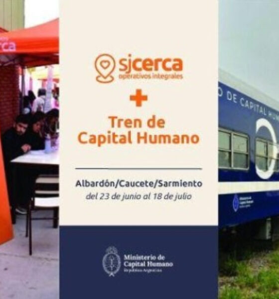 Desde el 23 de junio y hasta el 18 de julio, vecinos de Albardón, Caucete y Sarmiento podrán acceder a servicios médicos y trámites nacionales y provinciales gracias a la llegada del Tren de Capital Humano, que se integrará al programa San Juan Cerca.