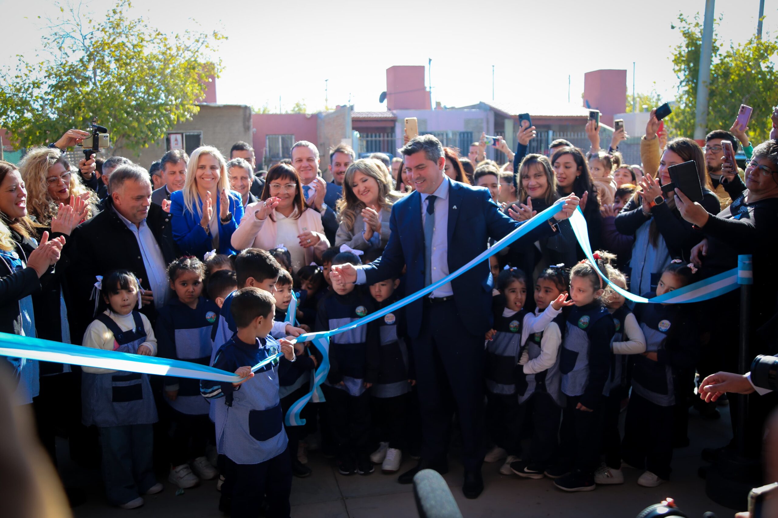 “Poder inaugurar una escuela no es poca cosa, tiene que ver con el futuro. La educación es el arma más importante que tenemos para desempeñarnos el día de mañana”, expresó el mandatario provincial durante el acto, acompañado por la intendenta Daniela Rodríguez; los ministros Silvia Fuentes (Educación), Fernando Perea (Infraestructura), Carlos Platero (Familia y Desarrollo Humano); y otras autoridades provinciales, municipales y educativas.