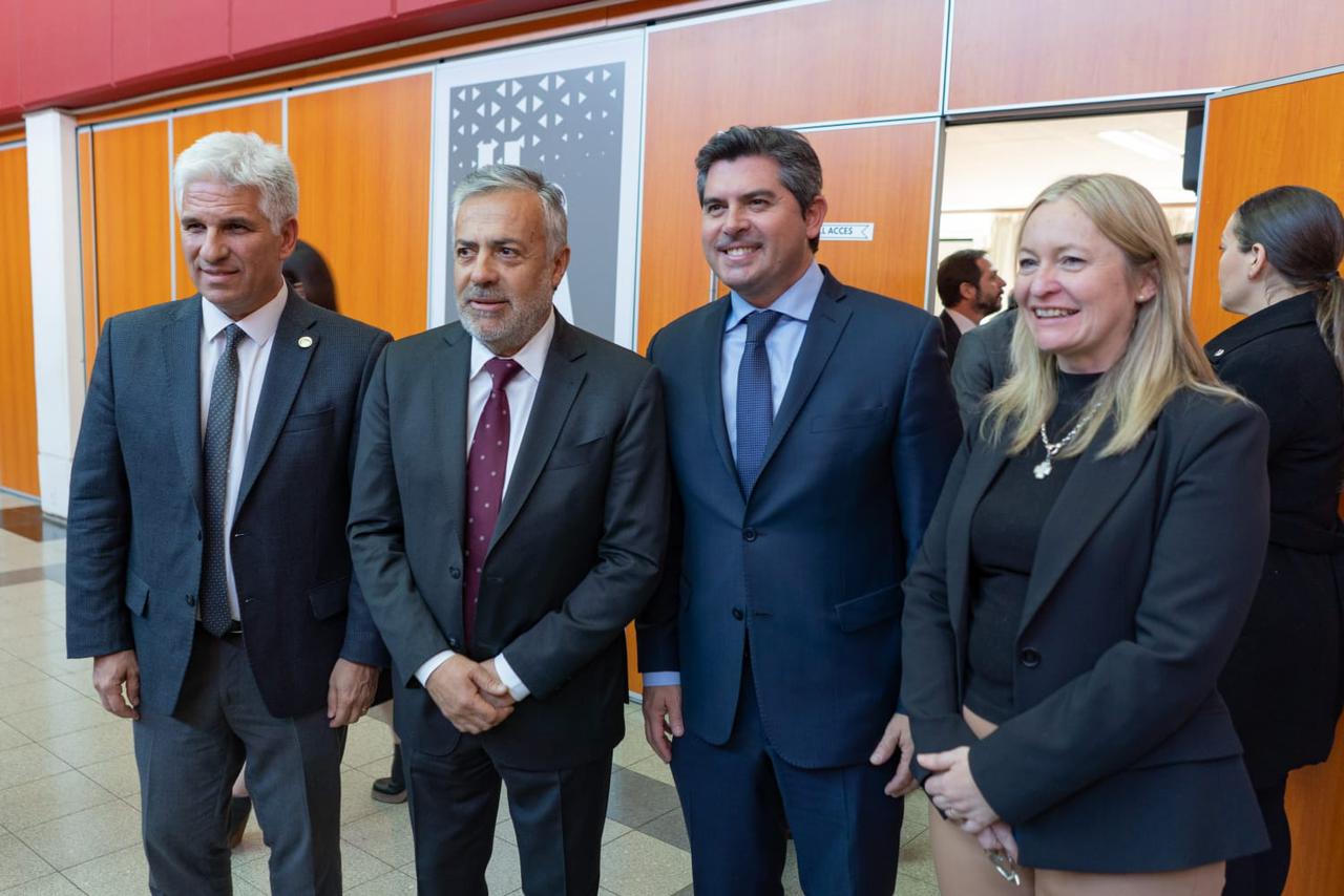 El gobernador estuvo acompañado por autoridades del Ejecutivo provincial, entre ellas la ministra de Gobierno, Laura Palma; el ministro de Producción, Trabajo e Innovación, Gustavo Fernández; el ministro de Minería, Juan Pablo Perea; y la secretaria de Relaciones Institucionales, Claudia Sarmiento.