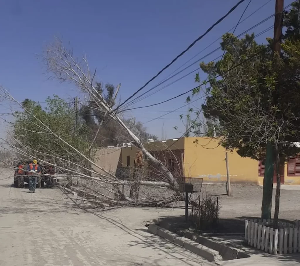 El viento zonda derribó árboles y generó complicaciones en distintos puntos de Jáchal